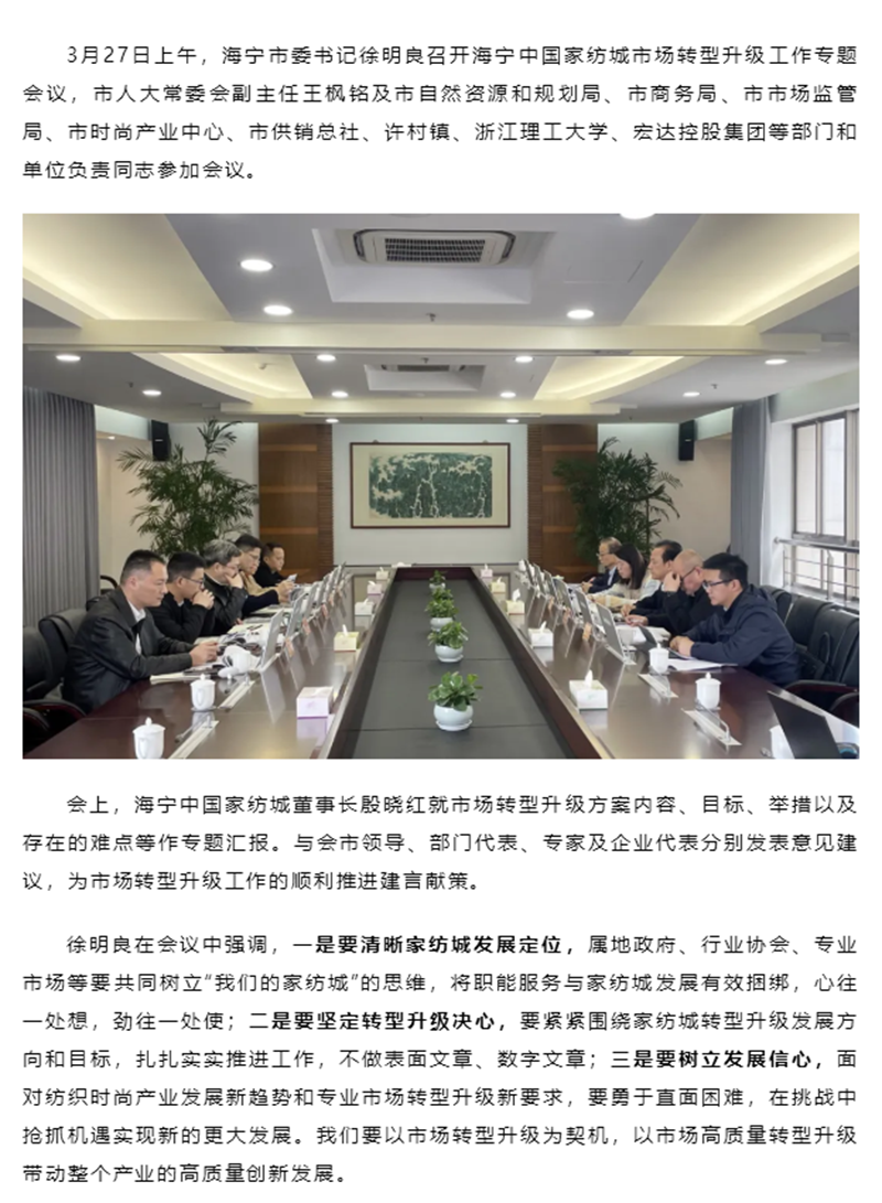 市委书记徐明良召开海宁中国家纺城市场转型升级工作专题会议